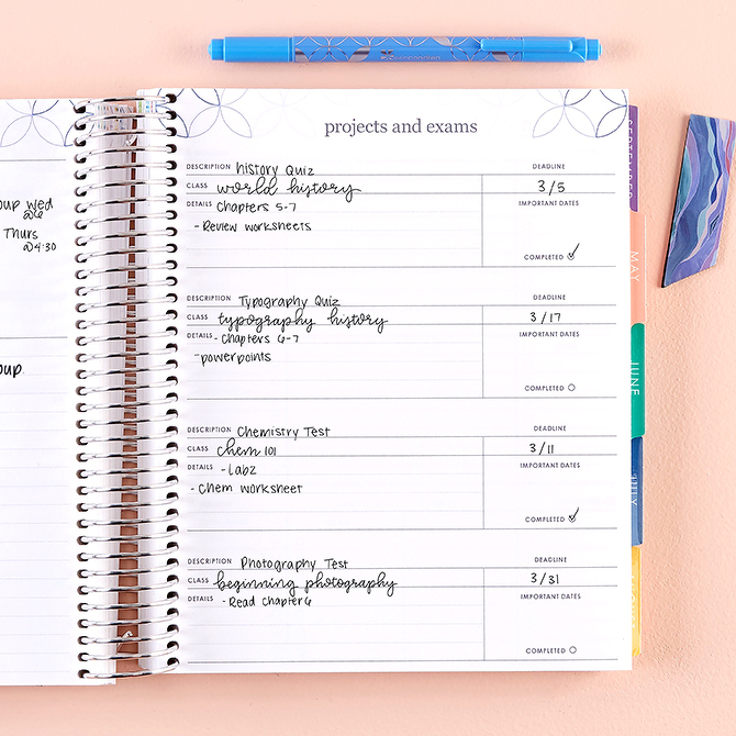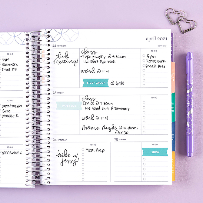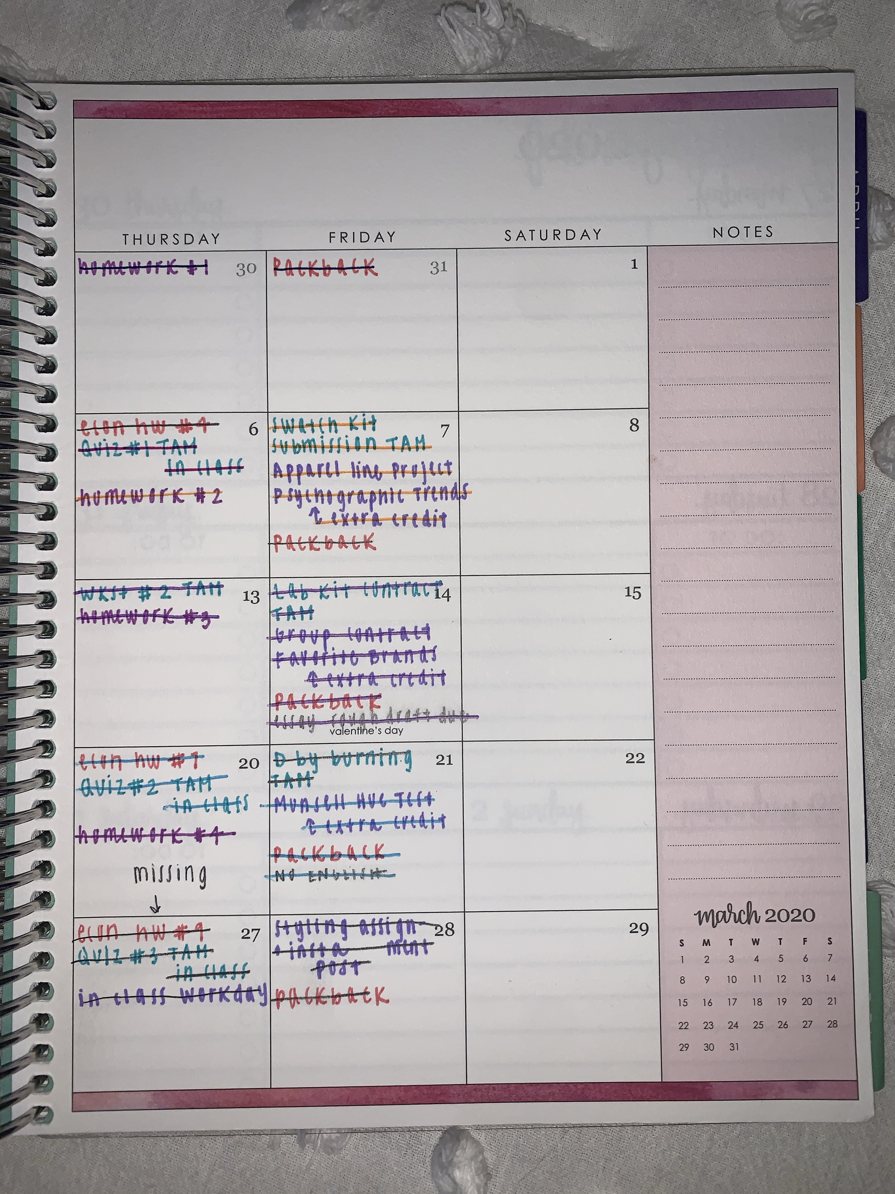 Always cross off your completed assignments so you know what you have left for the week (& because it makes you feel accomplished).