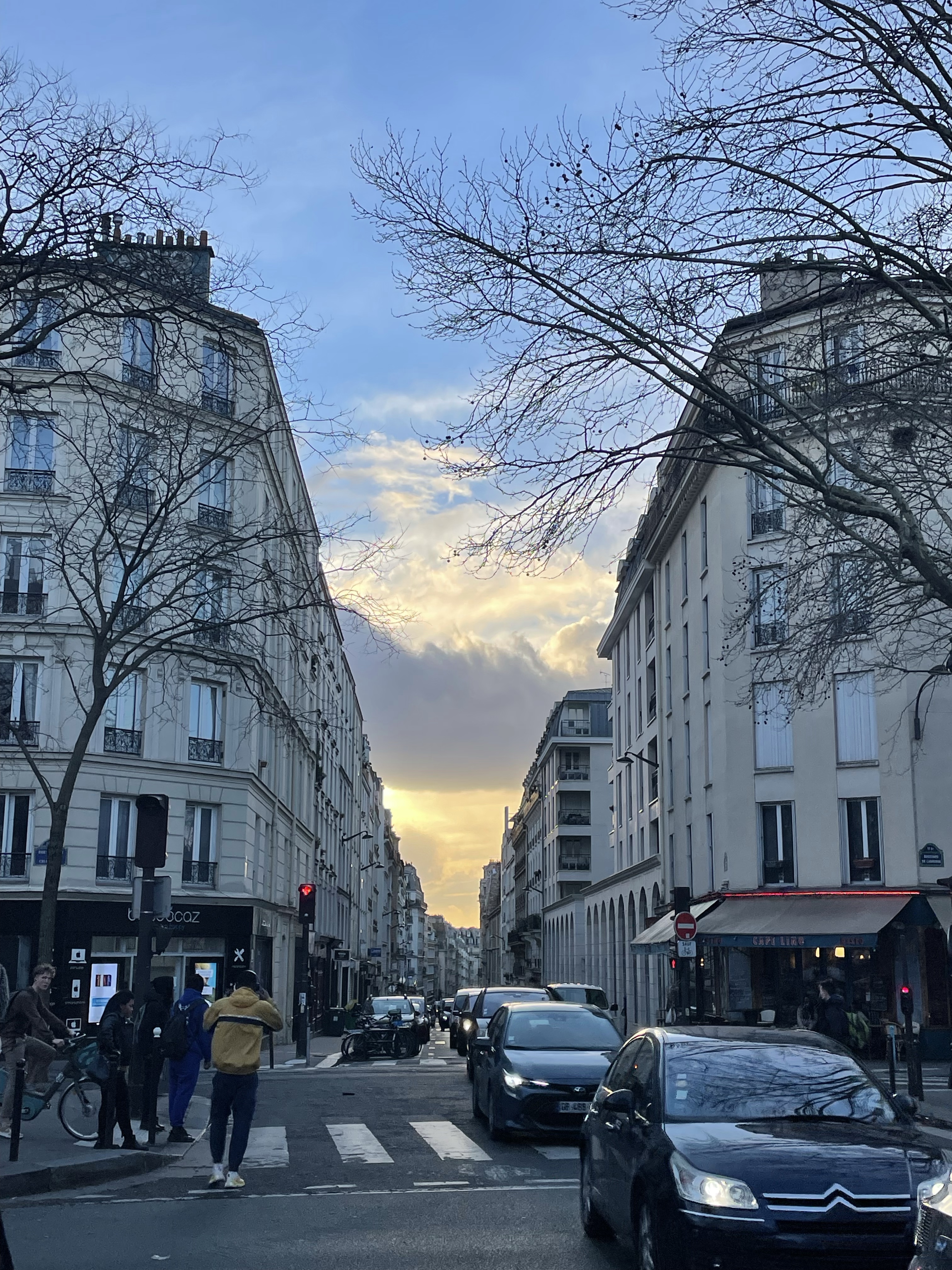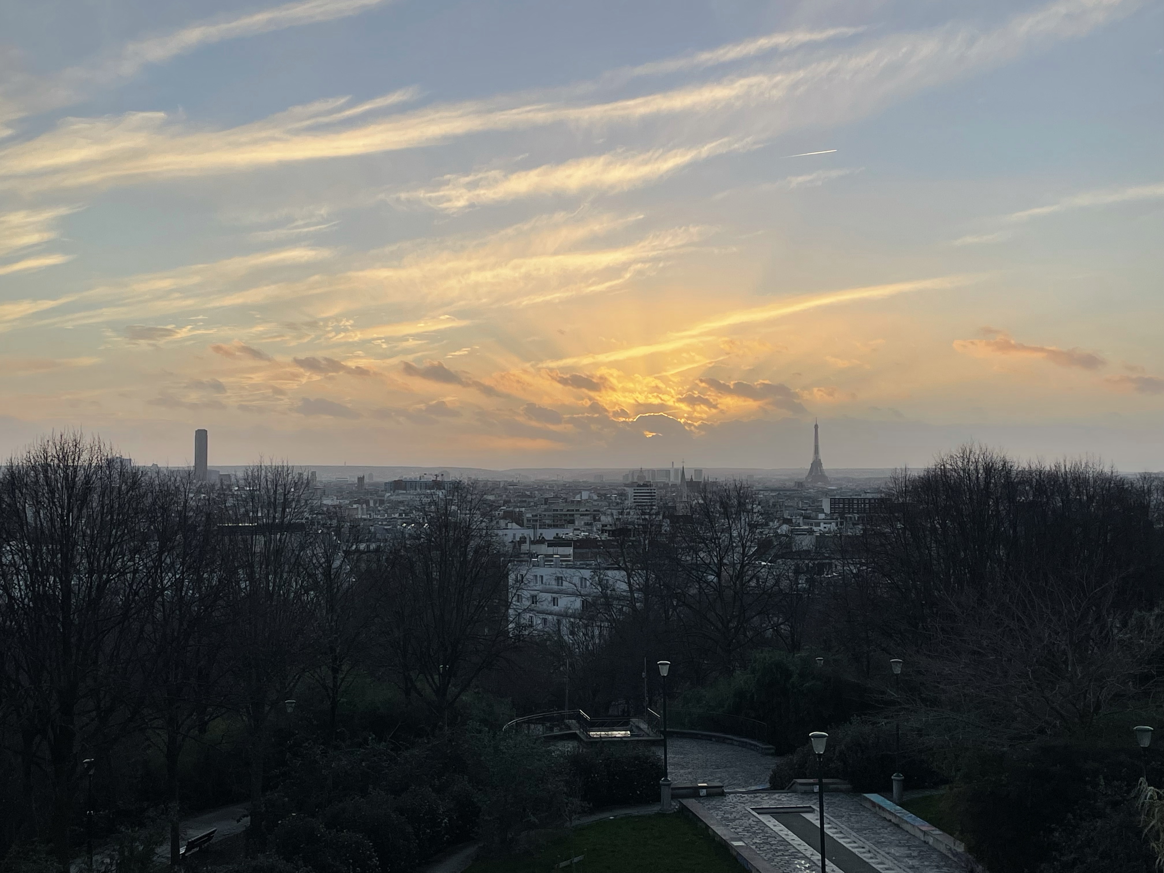 Our hostel gave us a recommendation for a sunset view of the city, so we walked to Belvédère de Belleville after eating to catch the 6pm sunset. Walking up to the lookout point was my first view of the Eiffel Tower. I was in awe of its size and structure. The pink and purple skies settling over the tower was the perfect way to kick off our first night in Paris. Across the street was Le hangar à bateaux, a bar that we grabbed a drink at to wait for dusk to set. At the top of the first hour of darkness, we watched the Eiffel Tower sparkle for our first time.