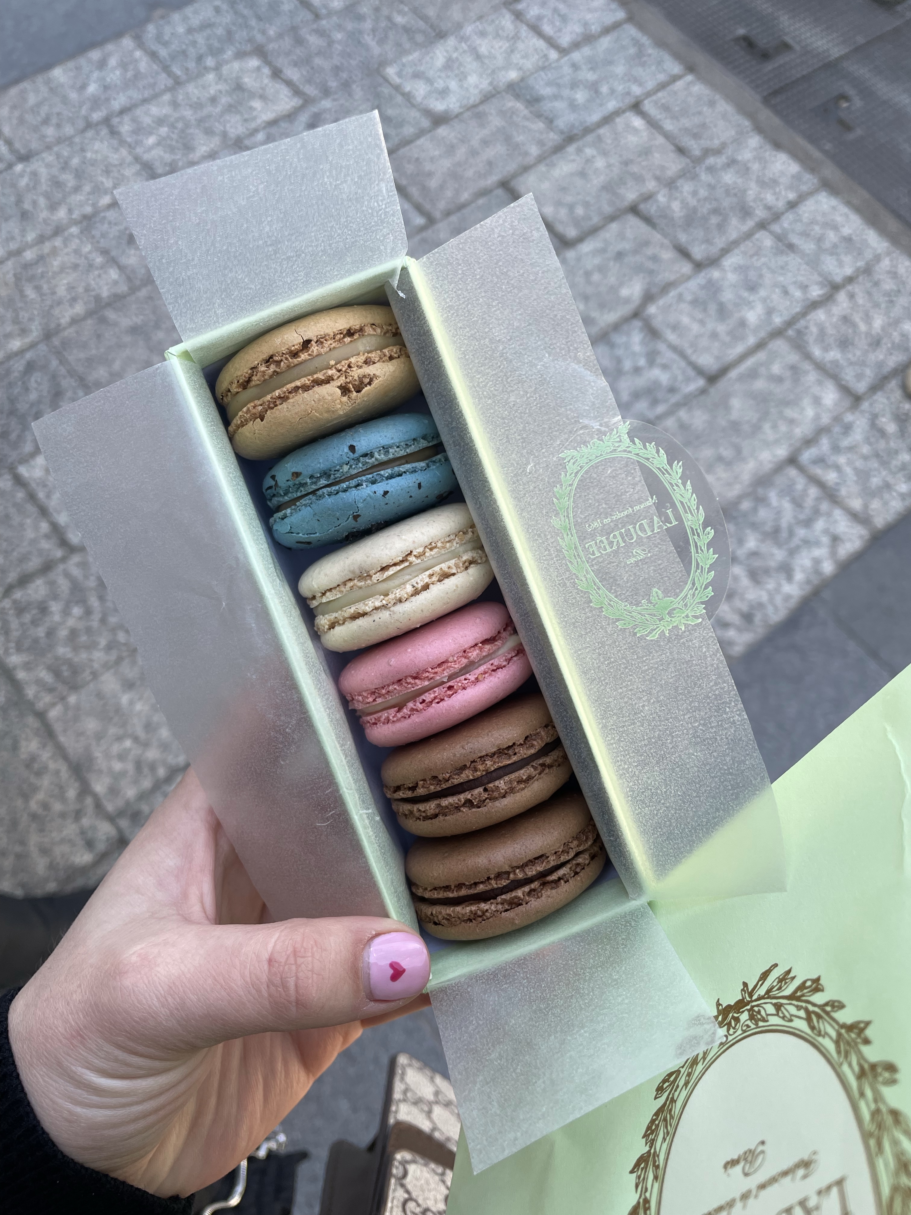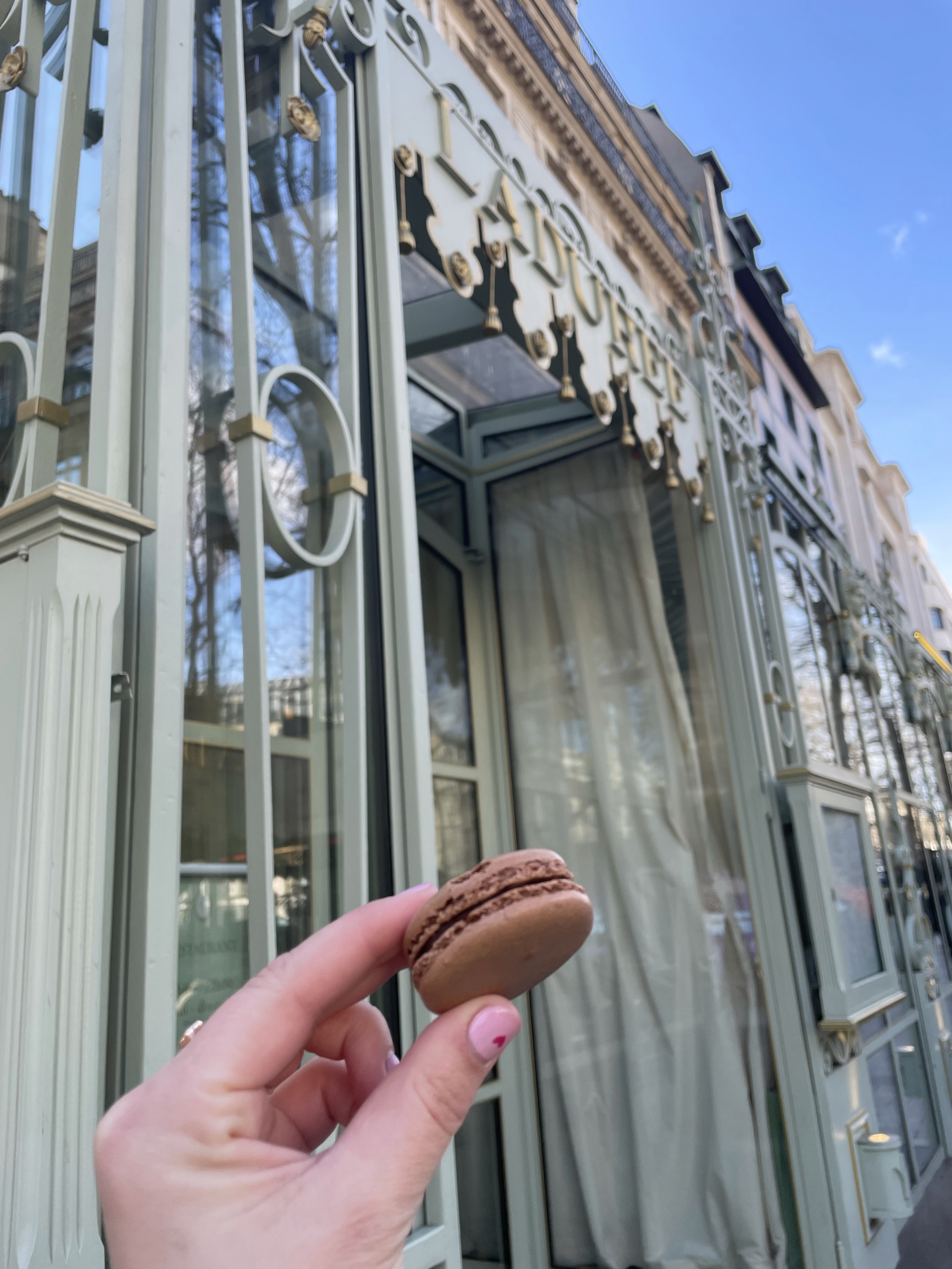 Just a few blocks down was Ladurée, an upscale French bakery with world-known macaroons. The restaurant/bakery was brilliant. Sculpted gold trim and royal green walls with stunning gold accents. The macaroons didn’t disappoint – the best macaroons I’ve ever had. Smooth, rich tastes with delicate flavors.