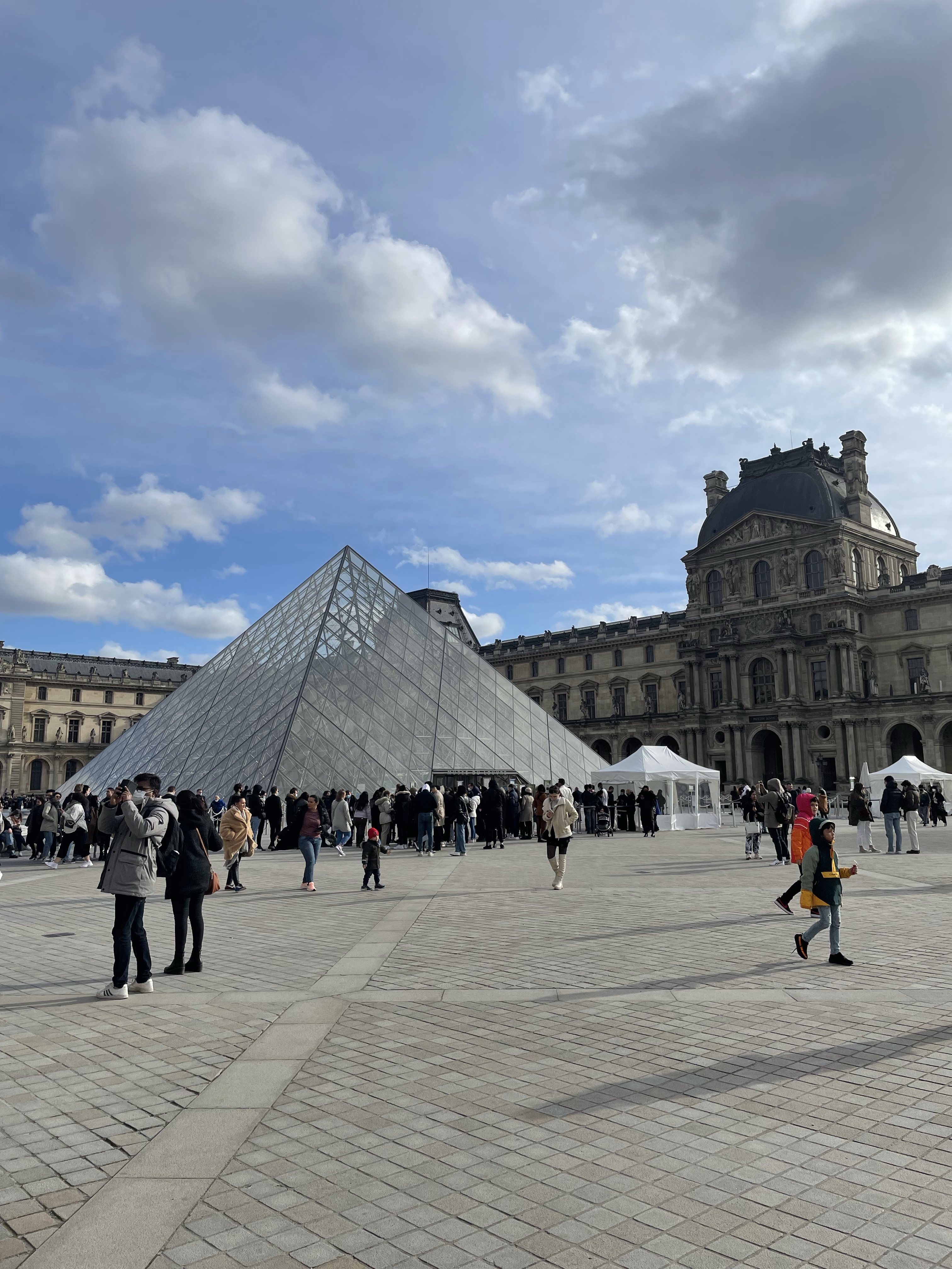 We later explored the Louvre. The area was crowded, so we didn’t stay long, but I did manage to touch the top of the pyramid. What can I say, I’m a tourist.