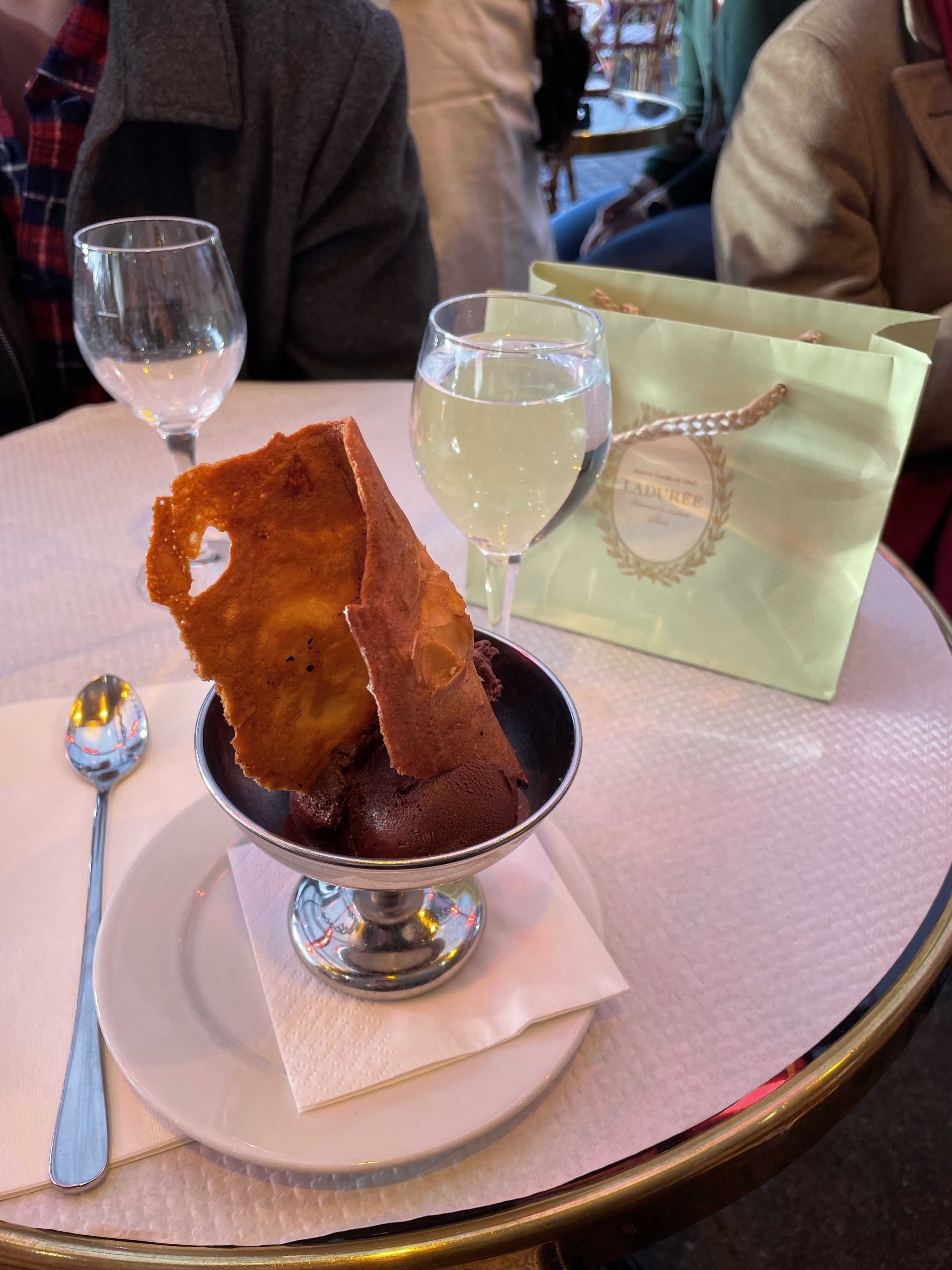 Cathédrale Notre-Dame de Paris was up next. It was sad to see the construction and ruin from the fire, but the front stood tall with gorgeous architecture. Right around the corner was Le Flore en l’Île, a French eatery with killer gelato. I stuck with my go-to, chocolate, and it did not disappoint.