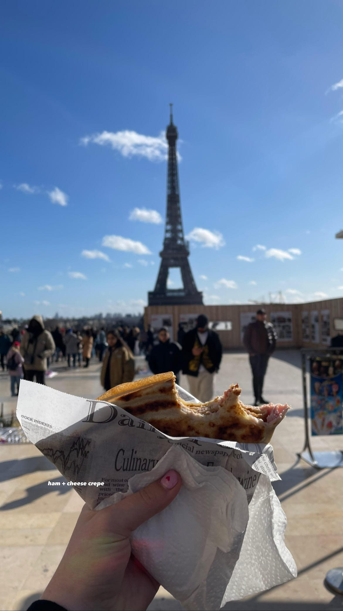 We started off the morning with on-the-go croissants from a cute street café next to our hostel. We spent the next two hours walking around the Eiffel Tower, taking pictures and admiring the park that surrounded it. Already hungry, we grabbed crepe sandwiches from a street vendor. I ate an unreal ham and cheese crepe. C’était délicieux.